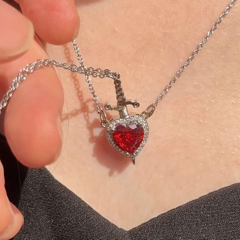 Collares Corazón y Espada Plateados para Parejas