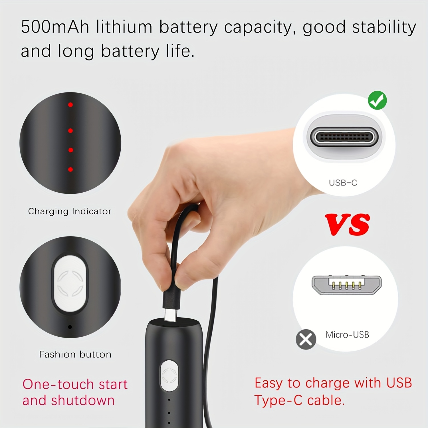 🔋 Recargable por USB: Práctico y portátil