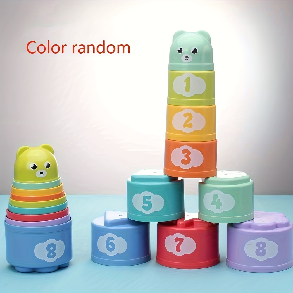 Este divertido juguete permite apilar, encajar y ordenar, ayudando a los bebés a aprender mientras juegan. Sus colores vibrantes y números del 1 al 8 lo convierten en una excelente herramienta educativa.
