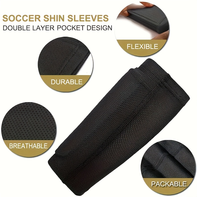 Protege tus piernas y juega con total confianza con el juego de 4 espinilleras transpirables para fútbol con mangas de compresión, diseñadas para máximo confort, ajuste seguro y alto rendimiento en cada partido o entrenamiento.