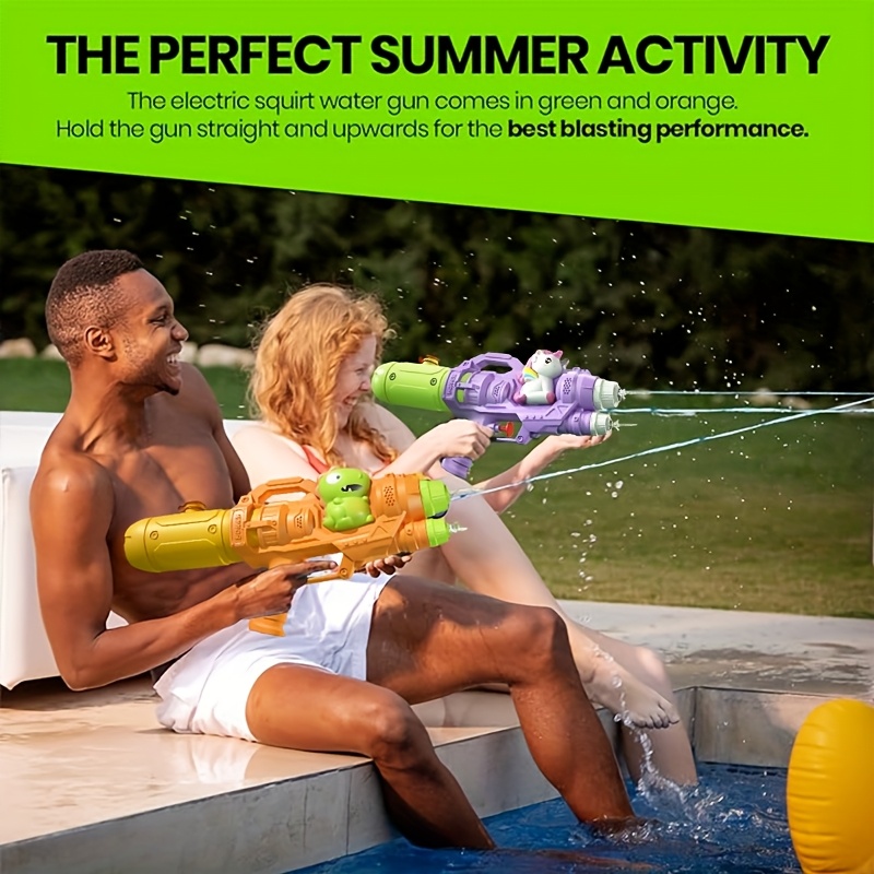 Diseñada especialmente para niños y niñas, este juguete acuático es perfecto para jugar en la playa, piscina, jardín o fiestas al aire libre, ofreciendo chorros dobles de agua para una experiencia más emocionante.